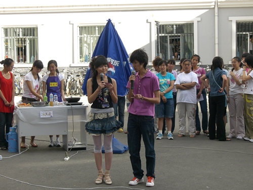 看,他们脸上的汗珠,他们忙碌的双手,但挡不住他们奋斗的激情,虽然忙得不亦乐乎,但他们依旧乐在其中,周围还不断有人为他们加油呐喊,那是对他们最好的鼓励。主持人的幽默,大众评审的机智,还有同学们的积极参与更为这次大赛增添了一道亮丽的风景线。