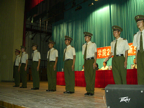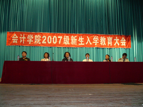 2007年9月4日下午,会计学院在东区大礼堂召开了首次2007级新生入学教育大会,拉开了新生入学系列教育的序幕。参加此次大会的有会计学院学工办成员、教官以及2007级全体新生,会议由院团委书记赵世杰老师主持。