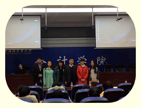 伴随着学生资助管理办公室成员带来的手语舞——《隐形的翅膀》,会议拉开了帷幕。会议第一项,吴晓光老师讲话。吴老师对励志宣讲会召开的意义给予充分肯定,希望通过树立典型,介绍了国家和学校的相关资助政策和各类奖学金。接下来,优秀学长学姐向同学们分享了学习经验。已经保研中央财经大学、多次参加各级专业竞赛并获得殊荣的韩巍巍同学分享了自己的学习方法和学习规划;“比赛牛人”肖雅文同学则向同学们讲解了“挑战杯”、“数学建模”和“ERP沙盘”的基础理念,分享了她的比赛经验并结合亲身体会,向同学们传授了很多实用的知识,鼓励大家积极参与比赛,更好的提升自己。