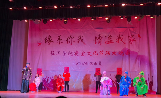 此次寝室文化节还举办了寝室联欢活动。寝室联欢以寝室文化节系列活动的表彰大会揭开序幕,以鼓励先进,激励大家继续努力建设寝室环境和培育寝室文化;随后潘鹏杰书记致辞,她邀请同学们一起思考并回答“寝室是什么?寝室有什么?寝室缺什么?寝室多什么?寝室要什么?”通过五个问题的互动,谆谆教诲在礼堂中回荡,表达了学院对轻工学子的期望与鼓励。接下来寝室文化节联欢晚会拉开帷幕:《请samsara开门》的舞蹈,以夸张有趣的肢体表达与滑稽的表情点燃了整个晚会热烈的气氛;歌舞青春,唱响飞扬的旋律,舞动绚丽的色彩,在以后的日子我们《奔跑在孤傲的路上》。优秀的晚会中怎么能缺少话剧的身影?《小宝金店》告诉大家生活有百般姿态,亦有百种无奈,一部诙谐幽默的话剧敲开了观众的心门,像我们阐述了这样深刻的道理,令人不能忘怀。为了更加能够带动全场气氛,增强同学之间的交流与合作,本次联欢晚会增多了不少游戏互动环节:滑稽搞笑的反串《模特大比拼》,“博闻多识”的《听歌识曲》,随机应变的《蒙眼过红绳》,将晚会的气氛推向高潮,赢得满堂喝彩。