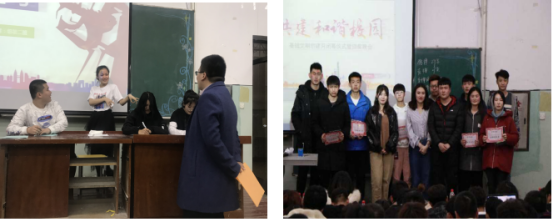 闭幕仪式开始前学院团委播放了在“基础文明创建月”期间举办的各系列活动视频,增强了同学们的认同感和关注度,使文明行为内化于心外化于行。随后同学们开展了以自编自导,形式多样,内容新颖、丰富,包括歌曲、舞蹈、小品等节目的文艺演出,其中小品《监考》围绕着高数补考考试所发生的一系列故事,倡导同学们端正学习态度,自主学习,诚信考试;《烤冷面的故事》以幽默搞笑的演绎方式,制止不文明行为,宣传和颂扬校园中的“真”、“善”、“美”。最后是颁奖环节,学院根据各团支部开展“基础文明创建月”活动情况,评选出“示范团支部”、“活力团支部”五个集体奖项和“公益服务之星”、“勤俭节约之星”、“健康生活之星”等六个个人奖项。