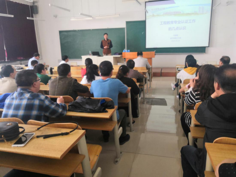 5月15日,轻工学院在A区3201教室举办了专业认证工作专题培训会。学院领导班子成员、各专业教研室主任、各专业任课教师参加了培训会。哈尔滨理工大学机械动力工程学院机械工程实验中心副主任付鹏强副教授做了题为《工程教育专业认证》的主题报告。付鹏强副教授曾担任华中科技大学、合肥工业大学、湖北工业大学、安徽工业大学等学校专业认证进校现场考查专家组秘书,在哈尔滨理工大学机械设计制造及其自动化专业工程教育认证工作中参与了申请报告和自评报告的撰写,进校现场考查接待等工作。