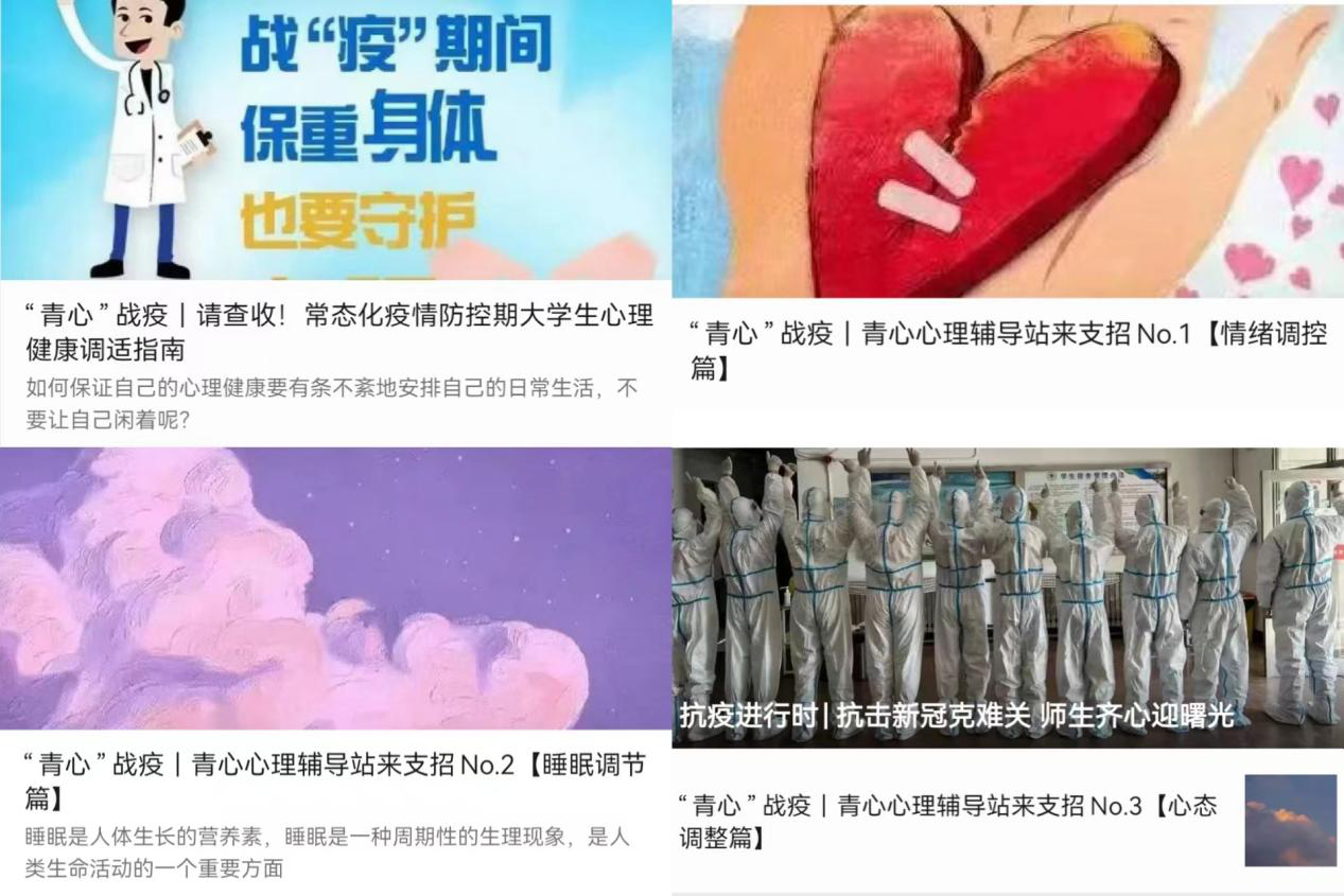 “青心”战疫系列推文获得学生的大量阅读、转发和收藏,许多学生反馈:“这些“小妙招”能很好地帮助自己接纳当下的不适应,学会主动调试,积极适应,于今后的生活来说也是获益匪浅。”