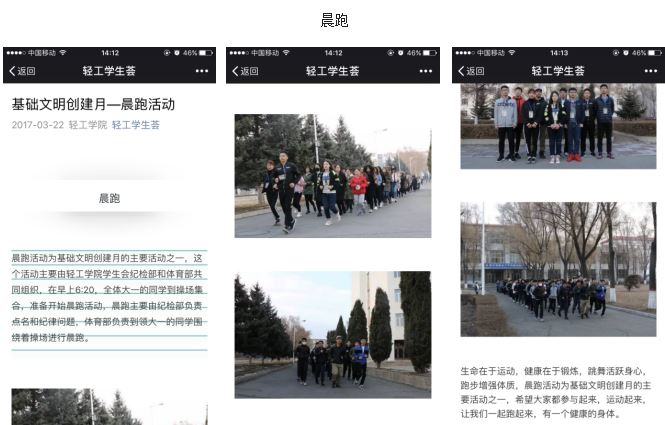 在舍务管理委员会同学的组织下,我院于3月下旬进行了“美丑一瞬间”照片评比活动,让同学们从“寝室美”、“生活美”、“和谐美”、“环境美”、“学风美”几个方面发现身边的美并记录下来,向他们学习,同时留意这些“丑”,时刻警醒自己和身边同学。我院一直倡导学生走出寝室、走向操场,过积极健康的大学生活,并坚持组织大一学生每天晨跑,每年度组织全院各年级学生举办“班对班”篮球赛。