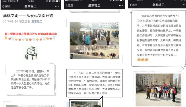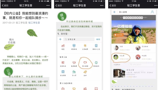 温暖之旅爱心社在“基础文明创建月”期间启动了每年一度的“志愿者文化节”系列活动,目前已经进行了慰问敬老院老人和爱心义卖两项活动,均收到了非常好的效果,参与的几十名大一同学纷纷表示活动特别有意义,虽然很累,但让自己觉得特别有价值,以后要尽自己所能参与公益活动,帮助更多有困难的人。我院团委还积极与校团委联动、配合,组织百名学生参加了“行走捐——统一行走日”活动,并在“轻工学生荟”微信平台上大力宣传此项行动,组织有序,效果良好,参与学生热情高涨。