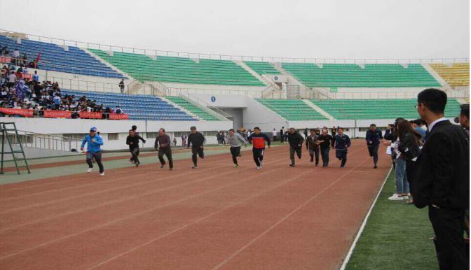 本次运动会竞赛项目多种多样,常规竞技项目和娱乐项目相互结合,相得益彰。运动员们本着“友谊第一,比赛第二”的原则,在跳高、跳远、长跑、接力,新增的集体跳绳、背人赛跑等既具有趣味性又不乏竞技性的赛场上,挥洒汗水,奋力拼搏。台下掌声雷动,喝彩连连。此外,几位同学用优美的歌声为运动会添彩。在场老师被赛场激烈的氛围所感染,纷纷踊跃参加教职工比赛!在比赛接近尾声时四大组织进行接力比赛,大家奋勇拼搏,展示了集体主义精神和永不言败的执着追求,再次把现场火热的氛围推向高潮。