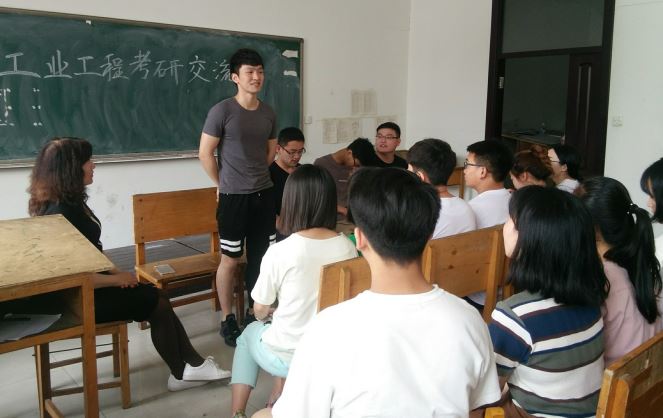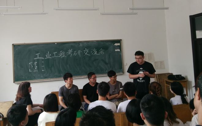 轻工学院13级工业工程专业有11名同学考上了天津大学、湖南大学、东北大学等名校, 6月17日上午,工业工程专业主任马丽心教授在学院制图室举行,组织了本专业的考研交流会,会上郭宁、赵科统、张家铭、张健4位学生向2014级同学们分享了考研经验及注意事项。