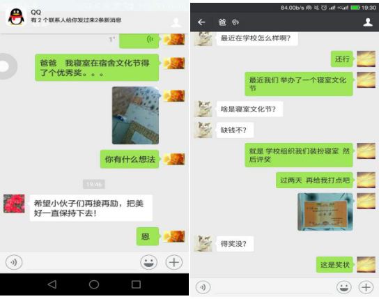 轻工学院第六届寝室文化节之“寝颂派对”之后,期待已久的寝室文化节续集——“爱你时光机”正式拉开帷幕。2016年11月19日以来,轻工学子们通过聊天软件的平台,向父母展示自己的自我管理、生活能力,让父母放心,以独特的方式传达出了与父母之间满满的爱。