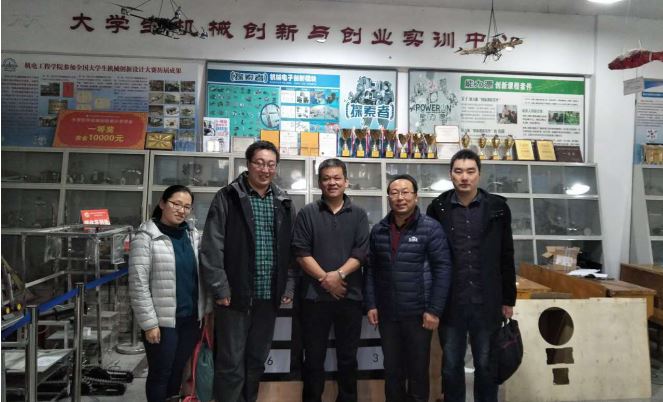 考察人员认真参观并听取了王滨生教授介绍哈尔滨工业大学大学生机械创新与创业实训中心建设情况,学生的创新作品和齐备的机械加工设备给考察人员留下了深刻的印象。哈尔滨工业大学“大学生机械创新与创业实训中心”创建于2009年,八年来多次参加各种创新竞赛和机械设计大赛,并取得了优异的成绩。实训中心展示了百余种学生获奖作品,其中包括高压电缆除冰机、自动炒菜装置、全地形排爆车以及多种仿生机器人。王滨生教授主要介绍了哈尔滨工业大学大学生创新创业的培养流程、制度建设、配套机制、经费渠道、基地建设、激励手段等经验,为我院学生创新创业能力的培养提供了方向。此外,王教授与几位教师进行了交流,针对大学生创新实践培养的方法路线提出了中肯实用的建议。通过此次参观调研,看到了优秀院校在培养大学生创新创业能力方面的优势,认清了学院在发展创新创业方面的不足,深刻意识到培养学生创新实践能力的重要性与必要性。