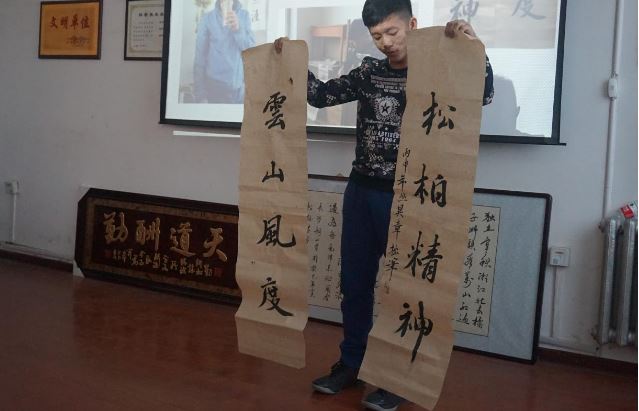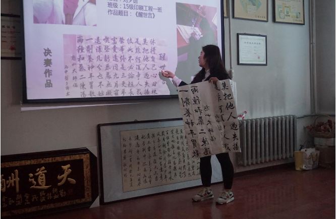 在这个电子设备铺天盖地的时代,能看到这样一群追求艺术,为艺术痴迷的同学静下心来,写一幅字、画一幅画,有一种悠然自得的感觉。希望会有更多的对书法、对艺术感兴趣的同学加入他们的行列,让大学生活少一些浮躁,也更加丰富多彩。