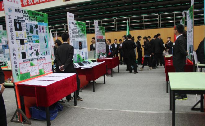 2016年5月中旬,轻工学院在学院办公楼一楼大厅举办了科技创新成果展,院里领导及老师均出席了此次科技展。