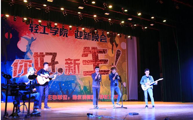 伴随着同学们的欢呼声,迎新晚会正式开始。整场晚会的每一个文艺节目都从不同方面展示出我院学生的多才多艺。歌曲、舞蹈、乐队演奏,彰显了大学生活的丰富多彩,也将老生们的热情和温暖传递给了15级的新同学。其中,学生会文艺部的歌舞“匆匆那年”以及15级新生联络员和学生会主席表演的歌舞受到了全体新生的热烈欢迎。最后的轻工大合唱,展现了轻工人的团结和热情。在场的同学们大声喊出刚刚结束的校运动会上我院的口号“激情澎湃,永不言败,斗志昂扬,轻工最强”,将晚会推向高潮。