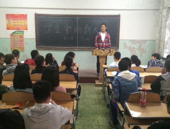 4月13日、14日晚五点,轻工学院学生会、学生团委、舍务管理委员会及勤工助学办公室在B04的2201、2202教室同时进行了面向14级新生的纳新大会。出席本次纳新大会的有14级辅导员刘佳老师、兼职辅导员赵丽丽老师,以及学生会主席团、各部门的部长和大二所有学生会成员。