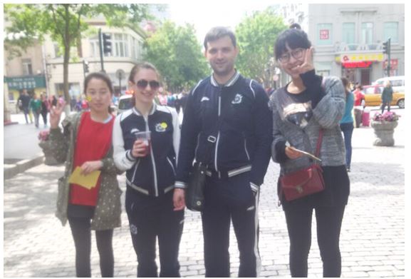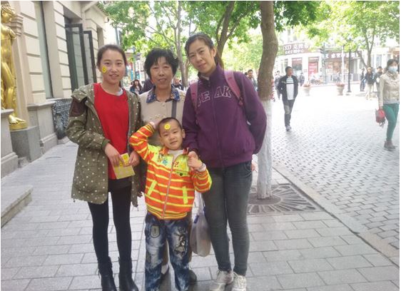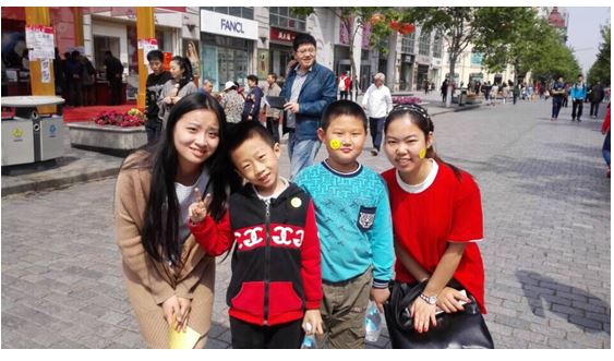 上午九点,同学们到达了目的地,自觉组成小分队并贴上微笑标志后,活动正式开始。当天阳光明媚,同学们的心情也分外晴朗。中央大街人来人往,儿童、青少年、中年人,也有相伴在晒太阳的老夫妻。同学们热情高涨,为遇到的每一位路人介绍活动的意义并与他们微笑合影留念。其中,令人印象最深刻的便是一对花甲老人。他们为同学们讲述着自己年轻时的故事。我们仿佛看到了自己的亲人,感受到了浓厚的父爱与母爱。还有一对来自国外的年轻夫妇,在和他们的交谈中可以感受到他们非常孝顺父母,这对远在异国的情侣也为他们的父母送上了最真挚的祝福。