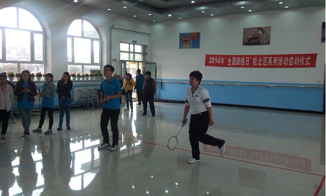 活动于5月16日上午9时正式开始,首先由残联领导为广大残障人士献上祝福与关爱,宣布松北区“全国助残日”系列活动正式开始。随后残联代表为孩子们送上学习机,鼓励孩子们认真学习,并送出助行器与轮椅若干,鼓励残疾人们多多运动,丰富生活。捐赠仪式后举行了残健联合运动会,由我院志愿者们与残疾人两两一组进行羽毛球、乒乓球等体育项目的竞技,残疾人士表现出热爱生活、向往美好的愿望,场面温馨、感人、励志。我院志愿者们很快与残疾人们熟悉起来,帮助他们学会使用体育馆内的健身器材,一起健身,引导他们不放弃、不自卑,笑对生活。大学生志愿者们用实际行动践行社会主义核心价值观,传递正能量,让每位残疾人沐浴关爱的阳光。
