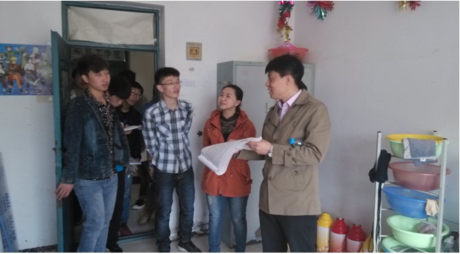 2014年4月18日星期五,我院党总支副书记张铁锋老师,团委书记任婵媛老师及11级辅导员张丽丽老师对我院全体男女生寝室进行了安全检查工作,对发现有潜在危险的寝室进行批评教育,强调寝室安全的重要性。检查中,老师不仅亲切地与同学们互动,交谈,而且对各寝室的状况提出了中肯的改进意见及建议,老师的和蔼可亲及平易近人给同学们留下了深刻的印象。