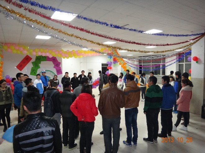 轻工学院在10月25日寝室表演赛顺利落幕后,趁热打铁于10月26日举办了寝室文化节系列活动之三——第三届新生联谊。此次活动在C区食堂三楼17:30分正式开始,分为自我介绍、游戏互动、奖惩环节、活动感言四个板块。