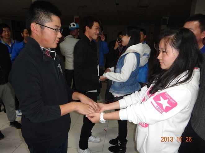 联谊是同学们相互熟识、相互了解的重要途径。活动初,有些同学稍显拘谨。但在主持人的热情鼓励下,同学们渐渐活泼起来,主动参加各种游戏,欢声笑语不断。其中,游戏互动如:抱团、007、叠报纸等更是展现了同学们的凝聚力、向心力与亲和力。游戏在奖惩环节时达到高潮,有的同学高歌一曲,有的同学做俯卧撑,而有的同学甚至搞怪的演起了话剧,惹得现场掌声不断。