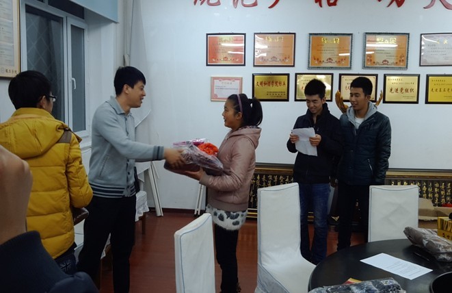 最后,党总支副书记张铁锋老师和勤工助学办公室的同学们一起为12名家庭经济困难学生一一发放过冬物品,同学们依次领取自己的物品,在一片温暖的气氛中结束了本次活动。