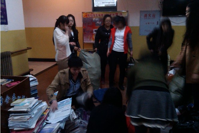 本次活动主要在八、九公寓进行,活动正式开始之前,男女志愿者分别在各自公寓楼下集合,经过活动负责人详细的任务分配之后,走寝回收废旧衣物的工作拉开了序幕。公寓每楼层平均分配了四至五名志愿者,他们手拿活动前期准备好的编织袋,在征得宿舍内同学的同意后进入每个寝室进行活动说明及开展工作。活动过程中,志愿者们热情高涨,同学们也是积极配合响应,并对志愿者们的志愿服务活动表示了充分的肯定。活动持续了一个多小时以后,志愿者们统一在宿舍楼下集合,并对回收到的废旧衣物、塑料瓶以及书籍进行分类,最后统一送往爱心仓库。本次废旧衣物回收工作也得到了轻工学院教师的热情支持,许多老师将家里的废旧衣物拿来捐赠给爱心社。在老师和同学们的关心帮助下,爱心社圆满结束了此次爱心志愿活动。