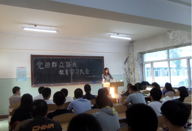 任老师首先传达了学校、学院开展党的群众路线教育实践活动的实施方案及上级有关文件精神,向全体学生党员介绍了开展党的群众路线教育实践活动的重大意义和对于完善学校教育、教学、文化全面建设的重要价值,阐明了此次学习实践的主要任务和基本原则,并要求全体学生党员高度重视、认真学习、深入实践,努力完善自身,去除不良习气,争取更大进步,同时以高度的责任感对学校的发展献言献策。