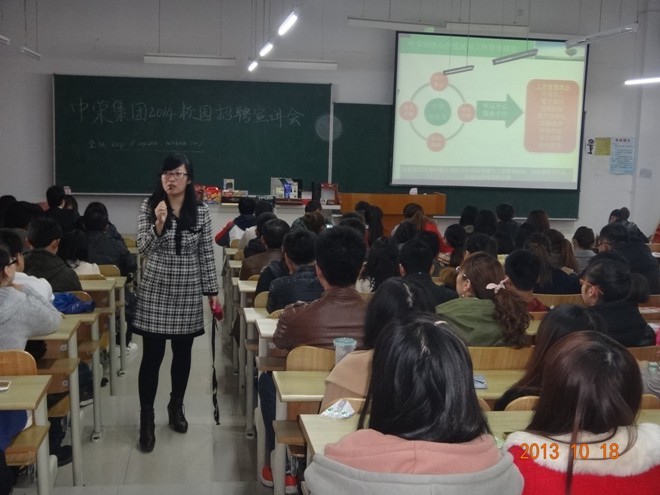 中荣集团2014校园招聘宣讲会圆满落幕。此次招聘宣讲会为中荣集团与毕业生提供了交流平台,通过这次宣讲会,学生们对就业与招聘有了更加深入的了解,增强了他们的信心,促使他们积极与用人单位展开交流,勇于展示自己的才华,真正实现了学生与用人单位的双向合作,应学生之想,供企业之需。