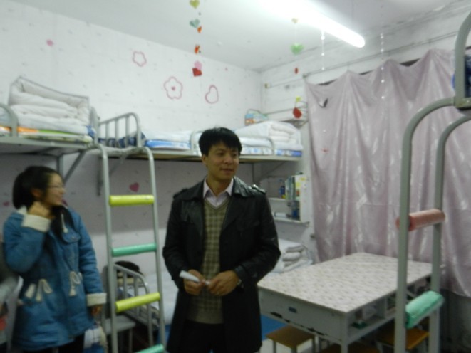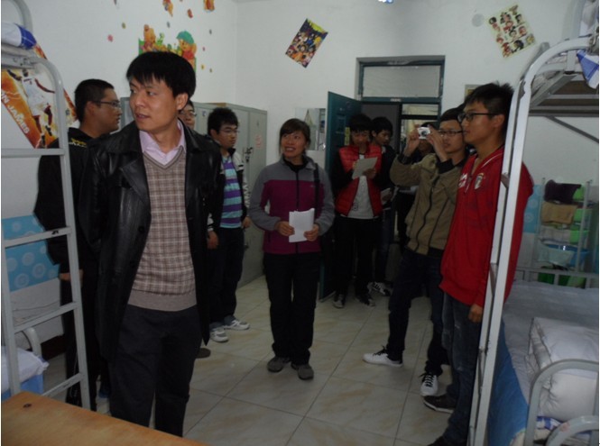 为了创建和谐寝室,丰富学生的课余生活,增强寝室同学间的凝聚力,轻工学院舍务管理委员会开展了寝室文化节系列活动。经过前期的精心准备,2013年10月22日晚寝室文化节系列活动之寝室装扮大赛正式拉开序幕。轻工学院党总支副书记兼2013级辅导员张铁锋副教授、2011级辅导员兼舍务管理指导教师张丽丽老师在舍务管理委员会同学的陪同下参观了2013级新生的寝室。
