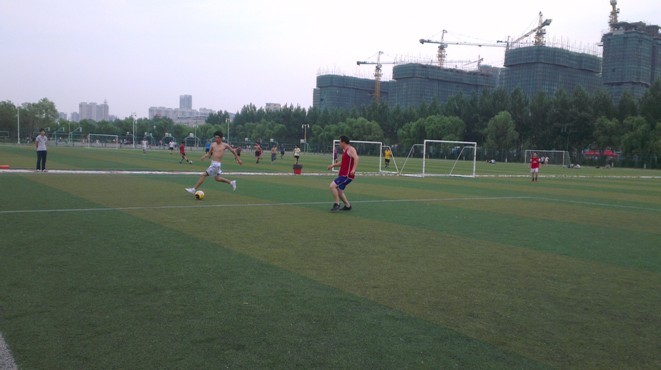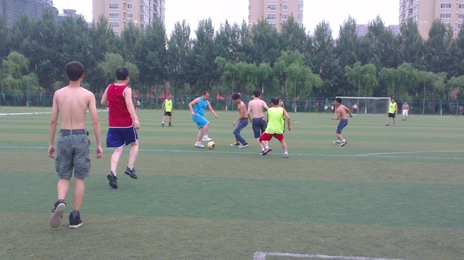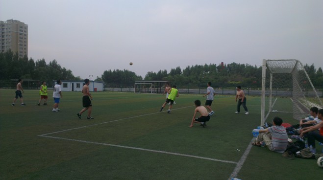 说是比赛,其实更像是一场游戏,充满欢声笑语,充满师生间没有距离的调侃,有人摔倒时又充满了真挚感人的关心。他们是亲密无间的师生和朋友,从教室、办公室、宿舍转移到足球场,继续着他们之间的深厚情谊。他们跑了两个多小时,这期间谁跑不动了,休息一下再继续,就是不舍离开,意犹未尽。同学们性格不同,勇敢大方的当着众人大声对老师说着“谢谢老师,老师要保重!”羞涩内向的小声在老师旁边私语着“老师您以后得多注意身体……”调皮的对老师坏笑着说道“老师以后别老抓学生补考了,要不就足球场上见!”笑声交叉着泪水,这就是毕业前的师生情。
