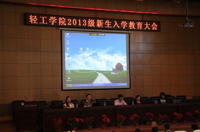 8月29日下午5点,轻工学院组织13级全体新生在专家公寓一楼报告厅召开了2013级新生入学教育大会。副院长金向阳副教授、党总支副书记张铁锋副教授、团委副书记任婵媛老师、教学秘书智慧老师出席大会,会议由10级辅导员刘佳老师主持。
