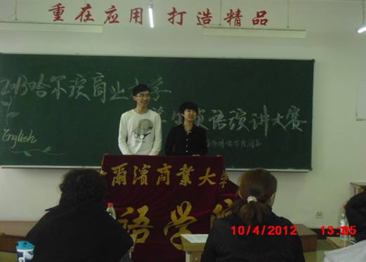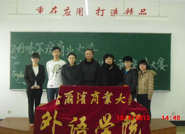 参赛选手均来自2011级和2012级,共37名。赛场上选手们个个精神饱满,信心十足。比赛现场,选手们流畅的英语口语,抑扬顿挫的语调,为在场的观众和评委老师们留下了深刻的印象。经过激烈角逐,有六名选手进入复赛,来自2012级的丛新和同学摘得桂冠。比赛结束后,评委老师与参赛选手合影留念,并就如何演讲和提高英语口语给学生提出了很多宝贵建议,本次活动圆满落幕。