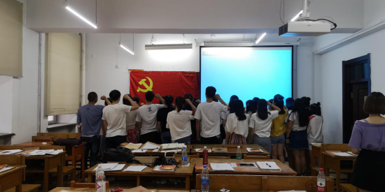 李老师要求同学们要有理想、有抱负、有追求、有信仰、有底线,要牢记习总书记的嘱托,努力做到爱国、励志、求真、力行。之后李老师对部分学生党员写思想报告在网上照抄等行为进行了严肃的批评,让在坐的同学们对自身仍存在的问题进行了深刻反思。最后,李老师的党课在昂扬激越的入党誓词的歌声中结束。
