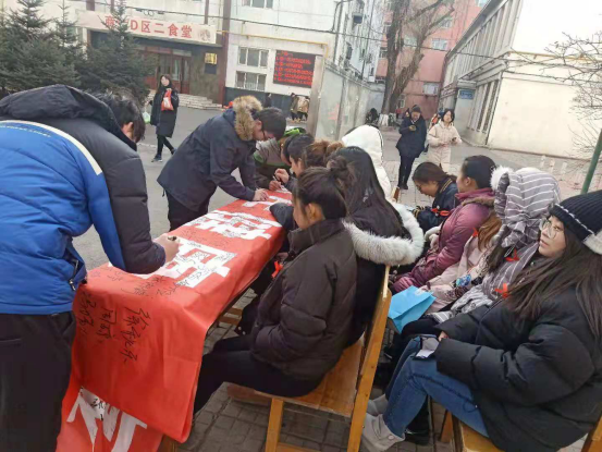 上午11点15分,学院学生会成员在南区二食堂旁摆放展板、展台,邀请来往的同学们在防艾条幅上签名,呼吁大家行动起来,携手共进,遏制艾滋,并为他们发放了红丝带。红丝带是艾滋病防治的象征,它象征着对艾滋病病毒感染者的关心与支持,带上它也表明了要用“心”来参与艾滋病防治工作。另外,学院的学生志愿者们在现场发放资料,通过现场讲解等形式,向同学们介绍了艾滋病毒的特征和危害,以及传染途径,填补了许多同学在艾滋病知识方面的空白。