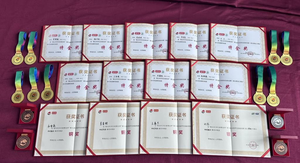 比赛期间,13名同学不畏强敌、发挥稳定,其中2人获得中式烹调特金奖, 2人获得中式面点特金奖,2人获得中式烹调铜奖,魏志春老师和王鹏宇老师荣获优秀指导教师奖。