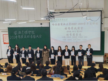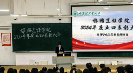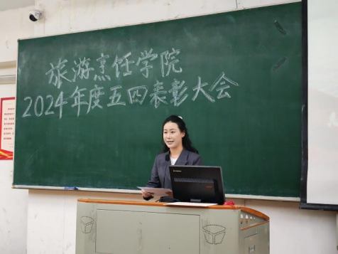近日,旅游烹饪学院以“青春榜样 闪耀前行”为主题的2024年度五四表彰大会在4107教室举行。学院团委书记、各年级辅导员及200余名学生代表齐聚一堂,共同见证过去一年在学业发展、社会实践、志愿服务等领域表现突出的集体与个人接受表彰,以榜样力量传承五四精神,激扬青年奋进力量。