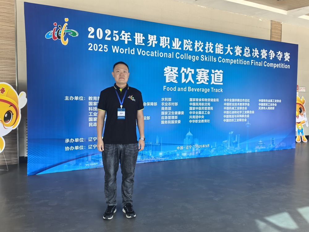 9月9日,2025年世界职业院校技能大赛总决赛争夺赛餐饮赛道在沈阳开赛。旅游烹饪学院王鹏宇老师受邀担任此赛事高职组评委。这一荣誉不仅是对王鹏宇老师个人专业能力的认可,也是对学院烹饪教育水平的充分肯定。
