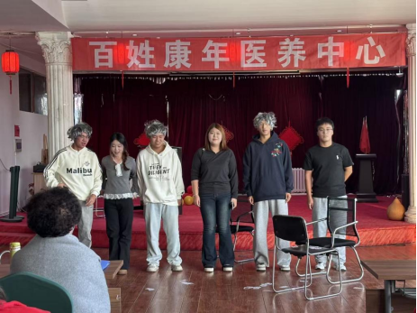 在重阳佳节即将来临之际,旅游烹饪学院“金晖行动”志愿服务队于10月26日走进百姓康年老年公寓,送上一场精彩纷呈的文艺汇演,用真挚的关怀与陪伴,为老人们送上节日的温暖与祝福。