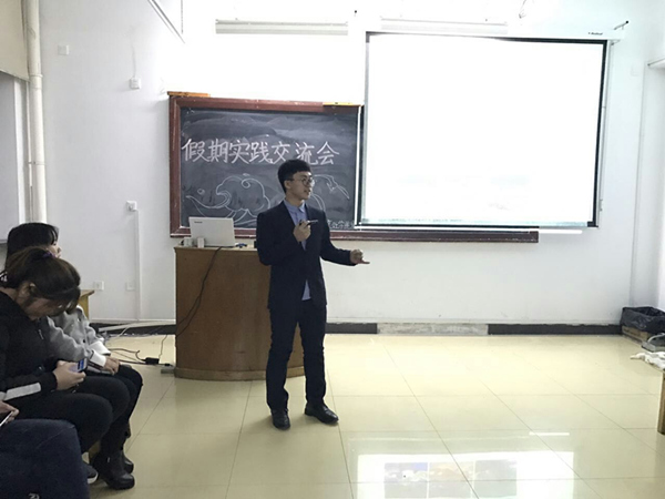 2017年3月16日晚5点寒假社会实践交流会在旅游烹饪学院楼202教室热烈举行。学院团委副书记杨晶老师和程宝老师以及参加寒假社会实践的同学出席了此次交流会。