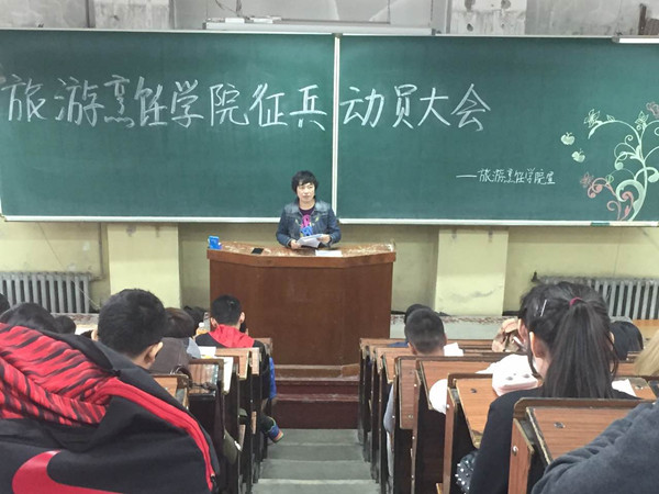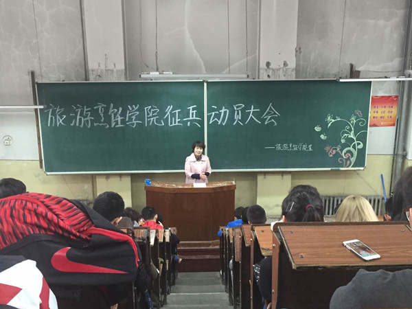 016年5月16日中午12点30分整,哈尔滨商业大学旅游烹饪学院征兵动员大会于综合楼J012正式拉开帷幕。参加本次动员大会的有学院党总支副书记李晓阳老师、院团委书记毕军老师、2013级退伍学生代表谷雨佳以及学院全体在校男生和有意愿参军入伍的女生。本次大会旨在积极响应国家征兵的号召,巩固国防建设,不断为军队注入新鲜血液,增强学院学生的参军意识,鼓励学院在校大学生参军。