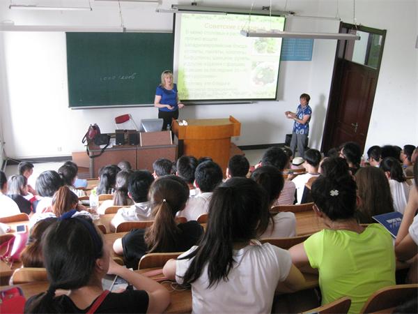 拉日杰斯特文斯卡娅·拉达·尼古拉耶夫娜教授为旅游烹饪学院师生带来了丰厚的俄罗斯饮食文化大餐,一幅幅照片为学生们生动形象的展现了俄罗斯不同地区的传统饮食以及俄罗斯饮食文化的发展过程,精辟地描述出俄罗斯人对待饮食的态度,为学生们开启了一扇了解俄罗斯饮食文化之窗。讲座现场座无虚席,同学们认真专注,充分汲取来自俄罗斯的异域文化。在讲座接近尾声之时,拉日杰斯特文斯卡娅·拉达·尼古拉耶夫娜教授还为同学们献上了准备了她与俄罗斯学生们共同制作的传统纯正的苹果蛋糕,掀起了整个讲座的高潮,同学们品尝过后都赞不绝口,感叹俄罗斯美食的奇妙。