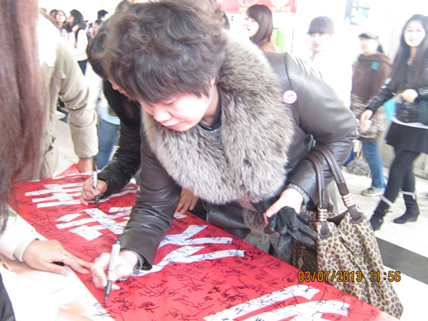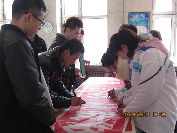 此次活动持续两天。活动开始,青马工程学习实践小组的同学们将此次活动的海报张贴在食堂楼梯处,醒目的海报吸引了同学们的注意,随后,两名同学手拿“笑脸贴”为上楼就餐的同学们贴上“笑脸”。并且邀请用完餐的同学在印有“光盘行动,从我做起”的条幅上签下自己的名字。就餐后的同学都纷纷将自己的空盘子放到餐具回收台,负责回收空盘的工作人员露出了欣慰的笑容。李晓阳副书记、团委书记毕军老师、团委副书记杨晶老师也来到食堂用餐,并率先在条幅上签字。此次活动的教育意义及其影响力得到广泛传播!