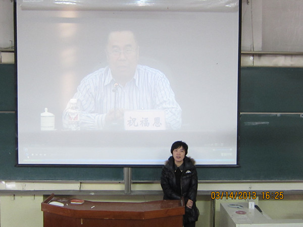 此次报告由黑龙江省委党校校长祝福恩教授通过视频主讲,主要阐释了对十八大精神的剖析与领悟。十八大精神突出一个“新”字,即新思想、新观点、新思路。此次学习,同学们了解了十八大报告中的三个“新”,即:把科学发展观与邓小平理论、“三个代表”重要思想并列,作为我党的指导思想;把“全面建设小康社会”改为 “全面建成小康社会”;科学总结了十年的成绩和经验,并实事求是地指出了工作中存在的6大问题。