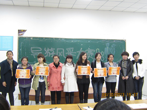 2013年4月10日,旅游烹饪学院第八届导游风采大赛(决赛)在南区主楼408室隆重举行。导游风采大赛历经八年,通过比赛一批具有专业导游知识和综合导游技能的优秀学生脱颖而出,其中的部分优秀学生到省、市级导游大赛中进行进一步的历练。院党总支副书记李晓阳老师、团委书记毕军老师、副书记杨晶老师、专业教师赵阳和刘淑萍老师作为评委参加了此次的比赛。
