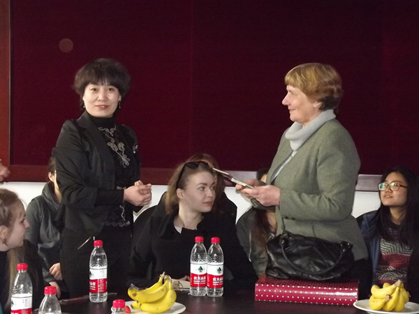 最精彩的部分之一是俄罗斯同学们精心准备的舞蹈,在场的师生们都兴致勃勃地观看,不由自主地为多才多艺的他们而喝彩。结束时,俄罗斯的同学们把精心准备的小礼物送给学院的领导和同学,李晓阳老师也代表全院师生员工把最具有中国特色的筷子作为礼物赠送给他们。在你来我往的交流中,中俄两国学生间的友谊又得到了进一步的加深。