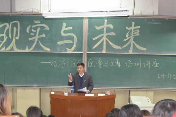 2012年4月20日,旅游烹饪学院“青马工程”学习实践小组在教学楼J033教室进行了“立足现实,展望未来”为主题的讲座。此次讲座是由旅游烹饪学院党总支书记、青马工程学习实践小组理论顾问郑昌江教授主讲。“青马工程”学习实践小组指导教师杨晶老师和全体成员都参加了此次培训。