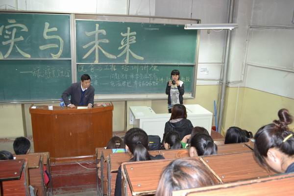 下午4点20分,讲座正式开始。郑昌江教授满怀激情的向大家诠释了什么是现实,什么是未来,现实和未来的关系以及当代大学生应当如何把握住时光,充实自己。作为当代大学生,要放眼未来,更要着手于现在的事情,抓住现在每一个机会去拼搏,未来才会晴空万里。下午六点讲座圆满结束。讲座结束后,郑昌江教授与参加培训的“青马工程”学员进行了互动,深入浅出、幽默睿智的解答了学生们的疑惑,赢得了现场一阵阵热烈的掌声。会后校广播站记者对郑老师进行了采访,谈到了学院“青马工程”小组举办此次讲座的意义时,郑教授说“作为当代的年轻人一定要有科学探索的精神,我们就是要力争为国家培养出理想远大,信念坚定,品格高尚,意志顽强,视野开阔,艰苦创业,开拓进取的新一代!”