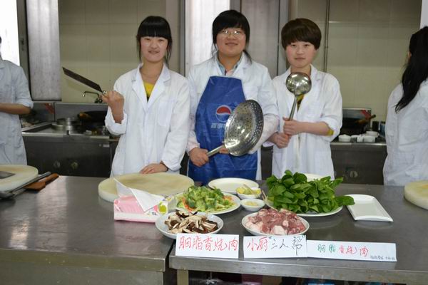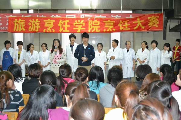旅游烹饪学院于2012年5月14日了举办以“烹饪荟萃,胃来精彩”为主题的烹饪大赛,参加本次比赛的有学院党总支副书记李晓阳老师、辅导员毕军老师、杨晶老师,以及学院五名烹饪专业老师和学生,共组成八支代表队和专业评审团。