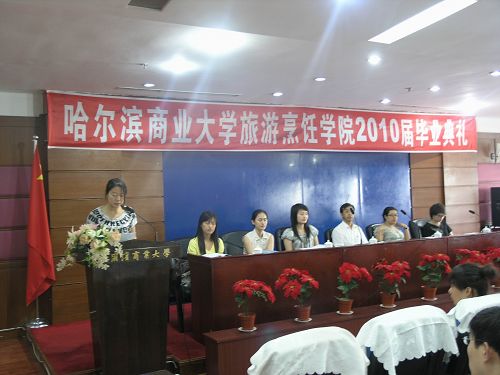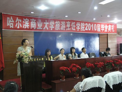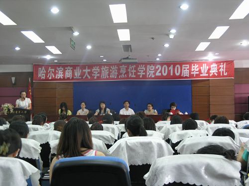 2010年6月25日下午2点,旅游烹饪学院2010届毕业典礼在商大酒店三楼多功能厅隆重举行。