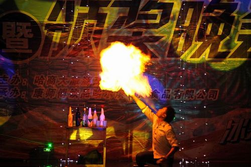 石长波院长发表了热情洋溢的讲话,随着石院长的一声锣响,晚会正式开始了。一曲“相亲相爱”使得会场暖意融融。唯美的歌曲、奔放的的舞蹈、热闹的音乐剧、幽默的话剧、充满阳刚之气的武术等表演无不显示出学生们的才华和蓬勃朝气。调酒表演更显专业性。商大酒店保安部的七名保安表演的“大葱舞”更是让现场笑成了一片。