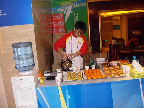 第24界世界大学生冬季运动会举办期间,在哈尔滨冰球馆、亚布力赛场、帽儿山赛场、媒体中心和运动员村,到处都能看到哈尔滨商业大学旅游烹饪学院学生志愿者的身影,他们时刻都在准备帮助和支援那些有需求的中外来宾。他们用实际行动赢得了大体联官员、运动员、教练员和中外记者们对他们的工作的高度评价。