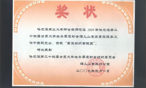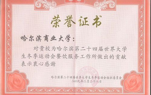 鉴于志愿者们的努力工作,大冬会组委会还向学校发来了荣誉证书,向学校给予大冬会餐饮工作所作的贡献表示感谢。